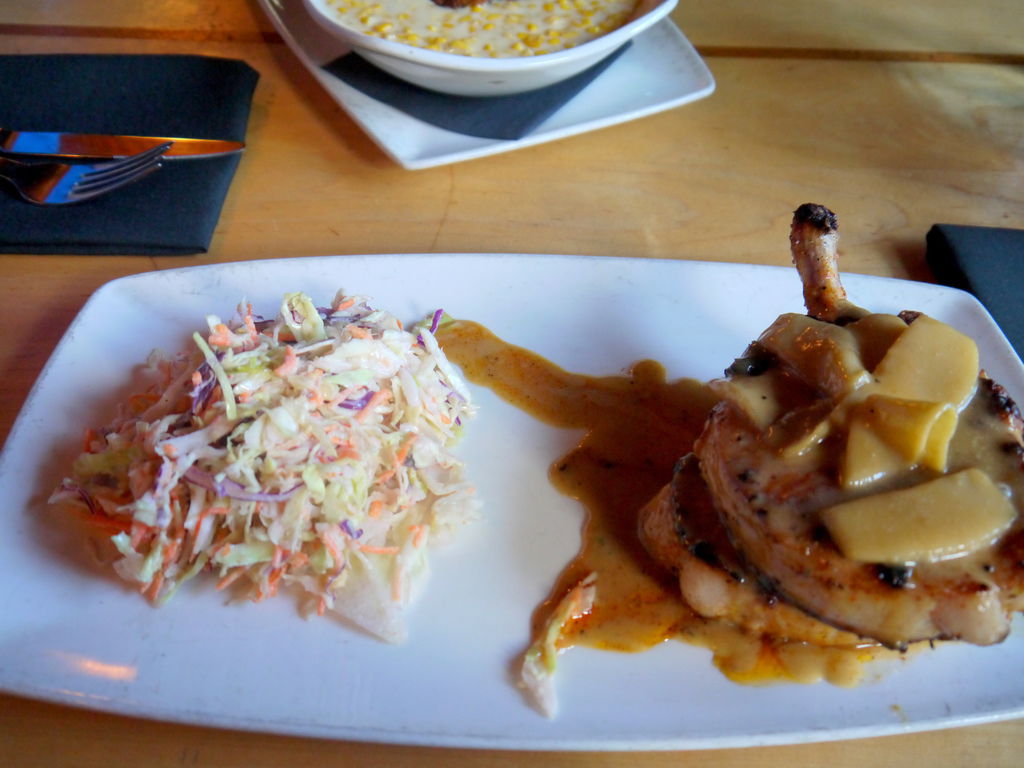 我點的Pork Chop烤的鮮嫩多汁, 沒吃過這麼好吃的Pork Chop, 一點也不乾硬. 上面的切片是水蜜桃.