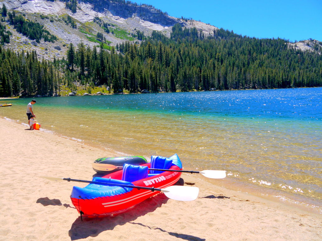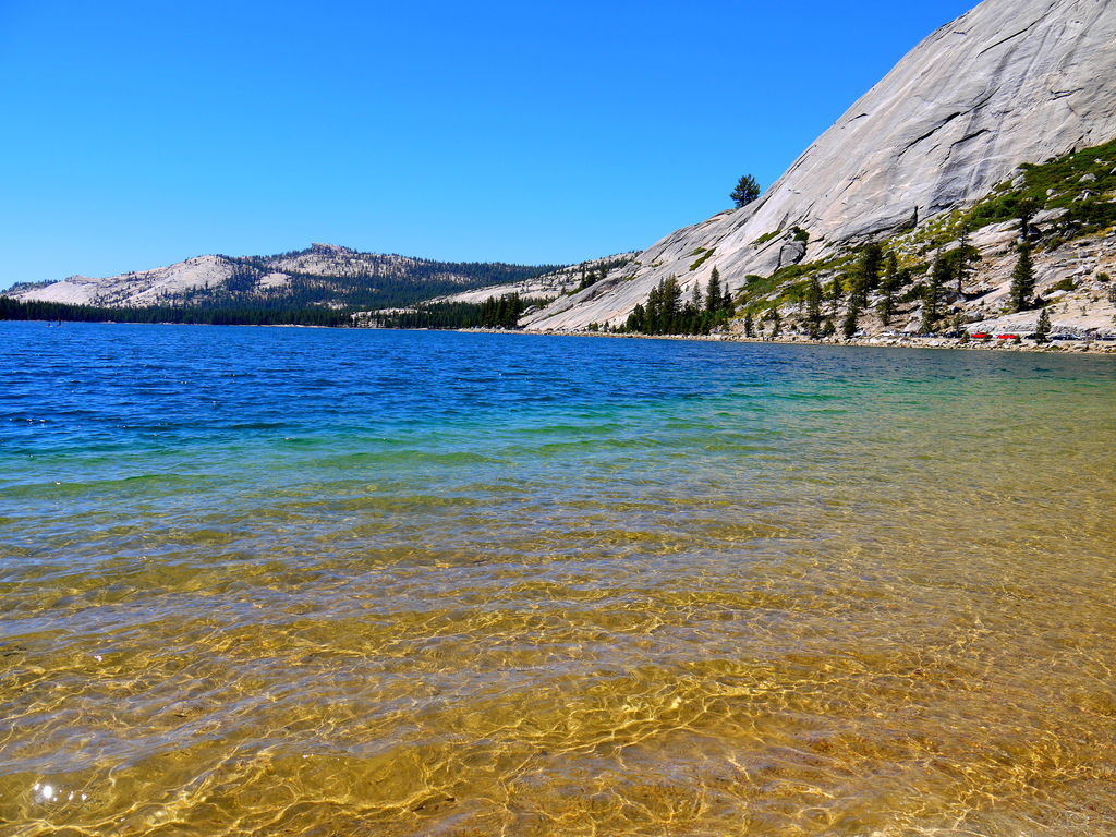 走一走我們來到Tenaya Lake. 這裡有沙灘~ 感覺很多人專程來這裡玩水 曬太陽 好像在海邊......